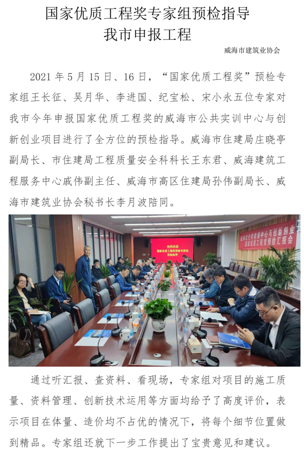 國家優(yōu)質(zhì)工程獎(jiǎng)專家組預(yù)檢指導(dǎo) 我市申報(bào)工程