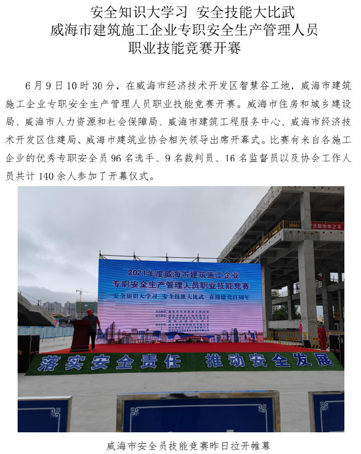 安全知識(shí)大學(xué)習(xí)安全技能大比武 威海市建筑施工企業(yè)專職安全生產(chǎn)管理人員 職業(yè)技能競(jìng)賽開賽