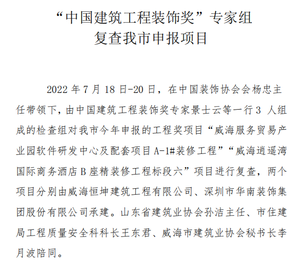 >“中國建筑工程裝飾獎(jiǎng)”專家組 復(fù)查我市申報(bào)項(xiàng)目
