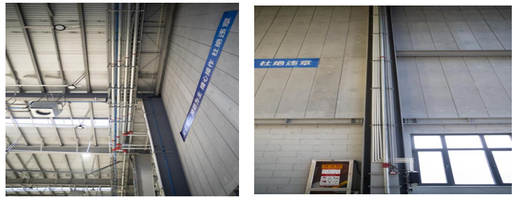 (1)PPR給水管道、熱鍍鋅消防管道、硬聚氯乙烯排水管道管道坡度合理、安裝牢固,經(jīng)通水、通球試驗檢測合格,無滲漏、堵塞情況。采暖、通風(fēng)管道連接平直,圓弧均勻。電纜橋架及管線安裝橫平豎直、排列有序。
