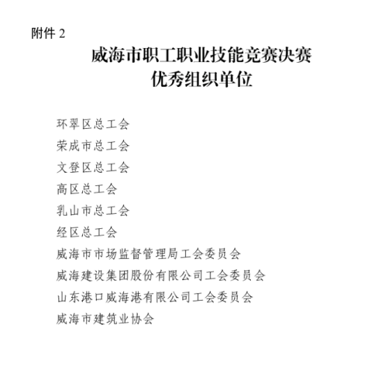 - 當(dāng)前位置:首頁 >焦點(diǎn)新聞>威海市建筑業(yè)協(xié)會(huì)榮獲市職工職業(yè)技能競賽決賽優(yōu)秀組織單位