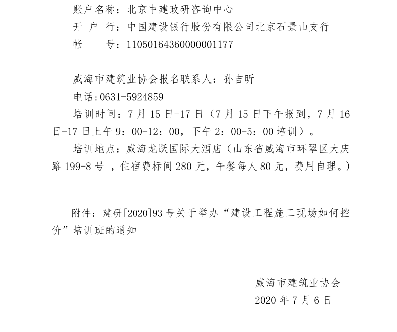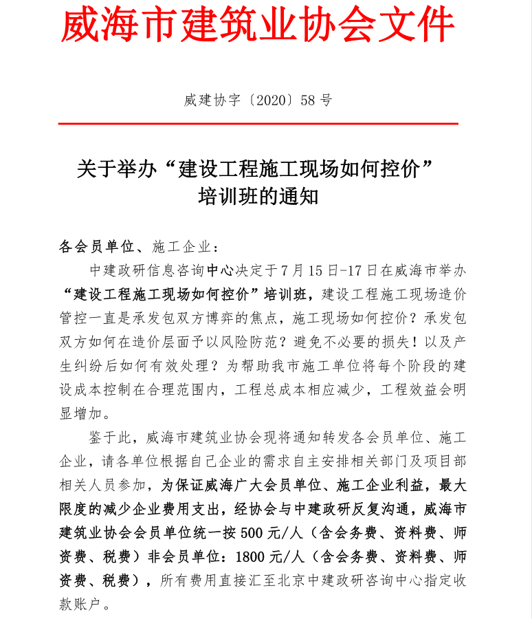 關(guān)于舉辦“建設(shè)工程施工現(xiàn)場如何控價(jià)”培訓(xùn)班的通知