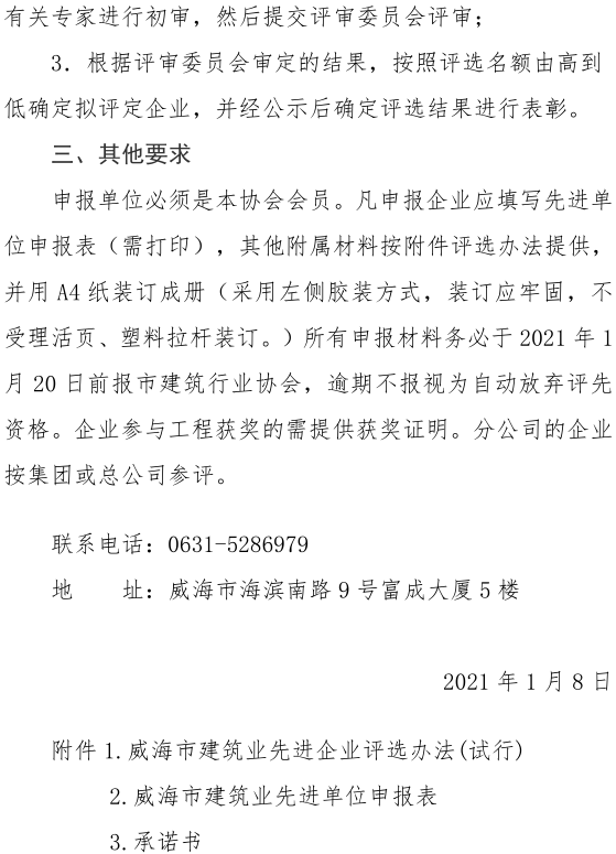 >威海市建筑業(yè)協(xié)會關于 評選2020年度建筑業(yè)先進單位的通知