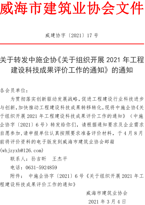 關(guān)于轉(zhuǎn)發(fā)中施企協(xié)《關(guān)于組織開(kāi)展2021年工程建設(shè)科技成果評(píng)價(jià)工作的通知》的通知