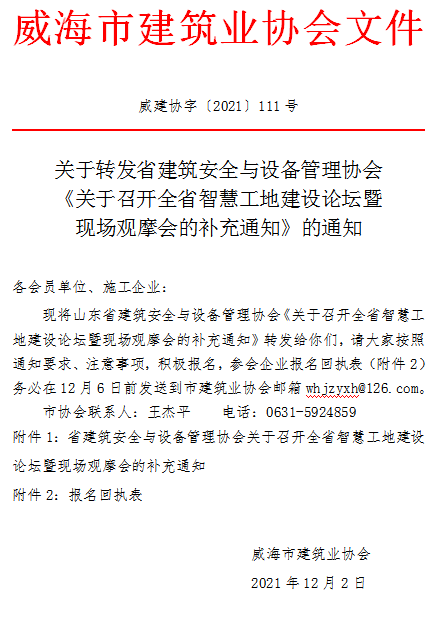 關(guān)于轉(zhuǎn)發(fā)省建筑安全與設(shè)備管理協(xié)會(huì)《關(guān)于召開全省智慧工地建設(shè)論壇暨現(xiàn)場(chǎng)觀摩會(huì)的補(bǔ)充通知》的通知