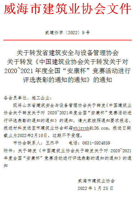 關(guān)于轉(zhuǎn)發(fā)《中國(guó)建筑業(yè)協(xié)會(huì)關(guān)于轉(zhuǎn)發(fā)關(guān)于 對(duì) 2020~2021 年度全國(guó)“安康杯”競(jìng)賽活動(dòng) 進(jìn)行評(píng)選表彰的通知的通知》的通知