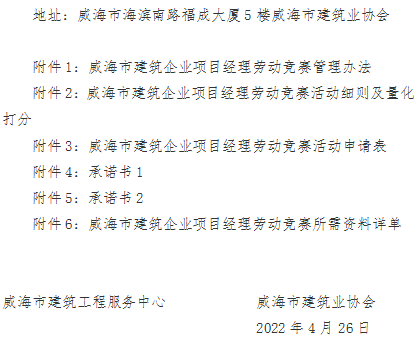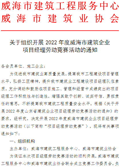 >關(guān)于組織開展2022年威海市建筑企業(yè)項(xiàng)目經(jīng)理勞動(dòng)競賽活動(dòng)的通知