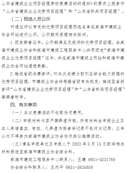 關(guān)于組織開展2022年威海市建筑企業(yè)項(xiàng)目經(jīng)理勞動(dòng)競賽活動(dòng)的通知