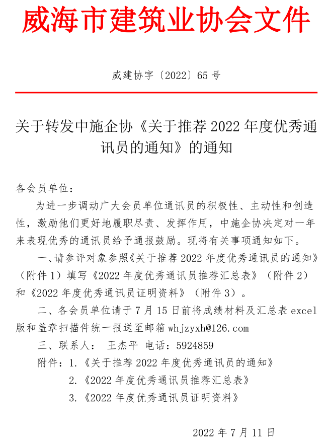 關(guān)于轉(zhuǎn)發(fā)中施企協(xié)《關(guān)于推薦2022年度優(yōu)秀通訊員的通知》的通知