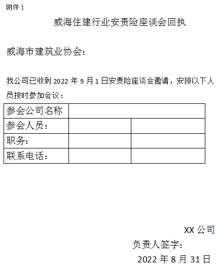 >威海市建筑業(yè)協(xié)會關(guān)于召開威海市住建行業(yè)安責(zé)險(xiǎn)座談會議的通知