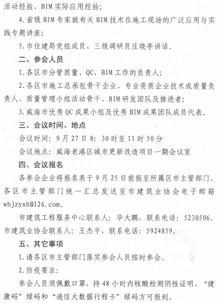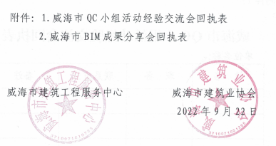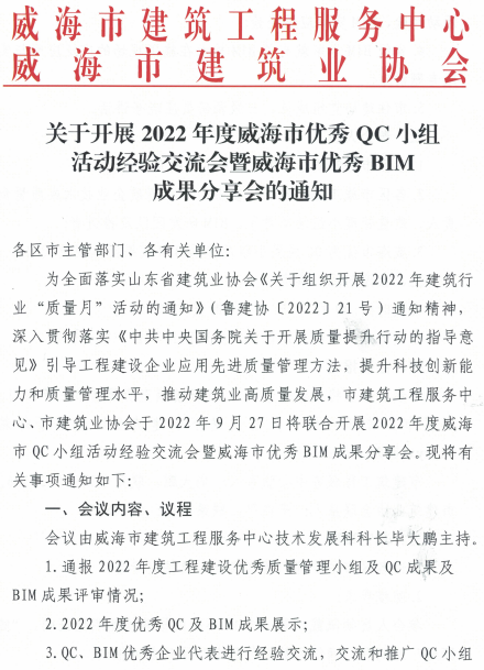 關(guān)于開展2022年度威海市優(yōu)秀QC小組活動(dòng)經(jīng)驗(yàn)交流會(huì)暨威海市優(yōu)秀BIM成果分享會(huì)的通知