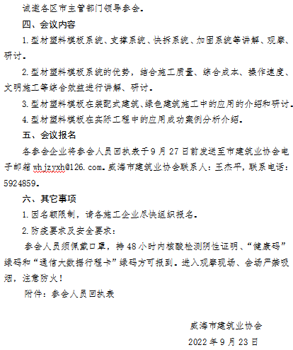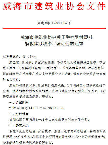 >威海市建筑業(yè)協(xié)會關于舉辦型材塑料模板體系觀摩、研討會的通知