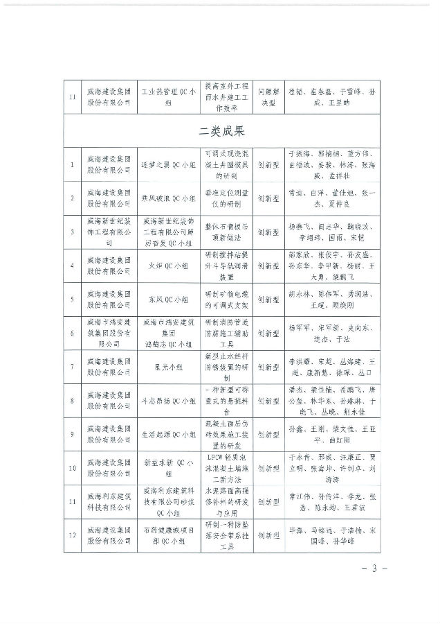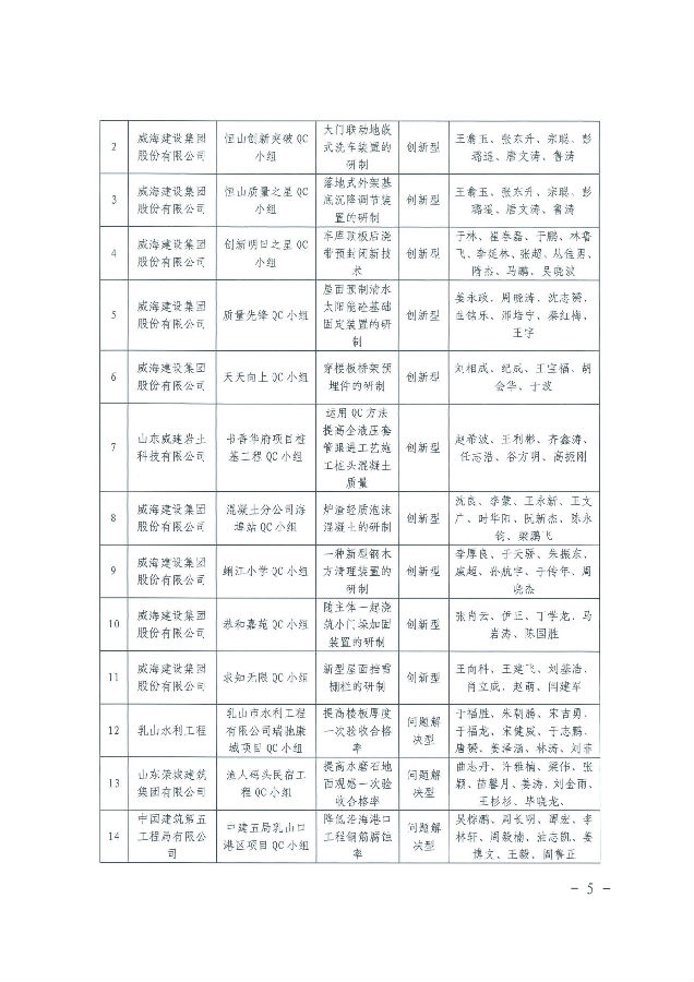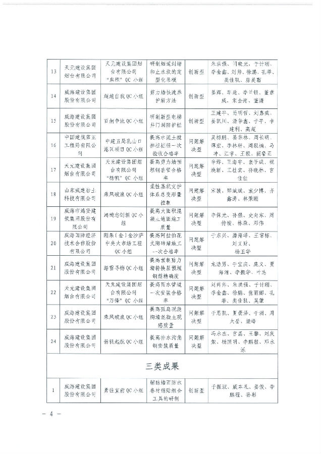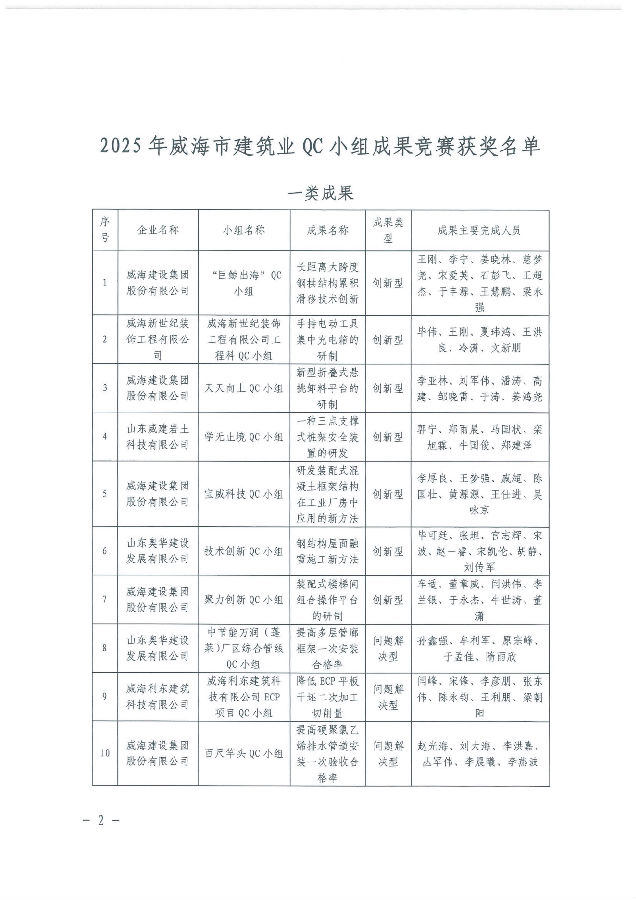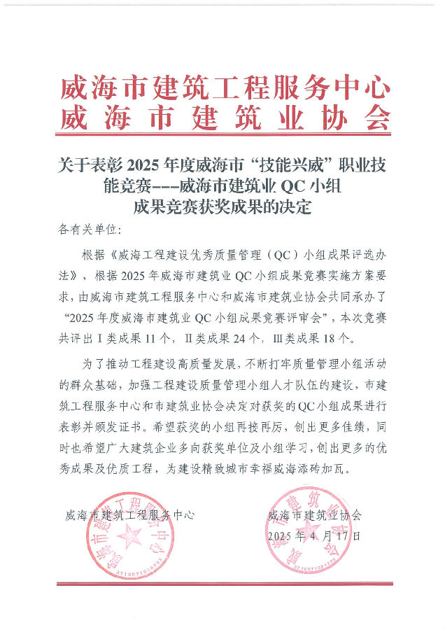 >關(guān)于表彰2025年度威海市“技能興威”職業(yè)技能競(jìng)賽---威海市建筑業(yè)QC小組成果競(jìng)賽獲獎(jiǎng)成果的決定