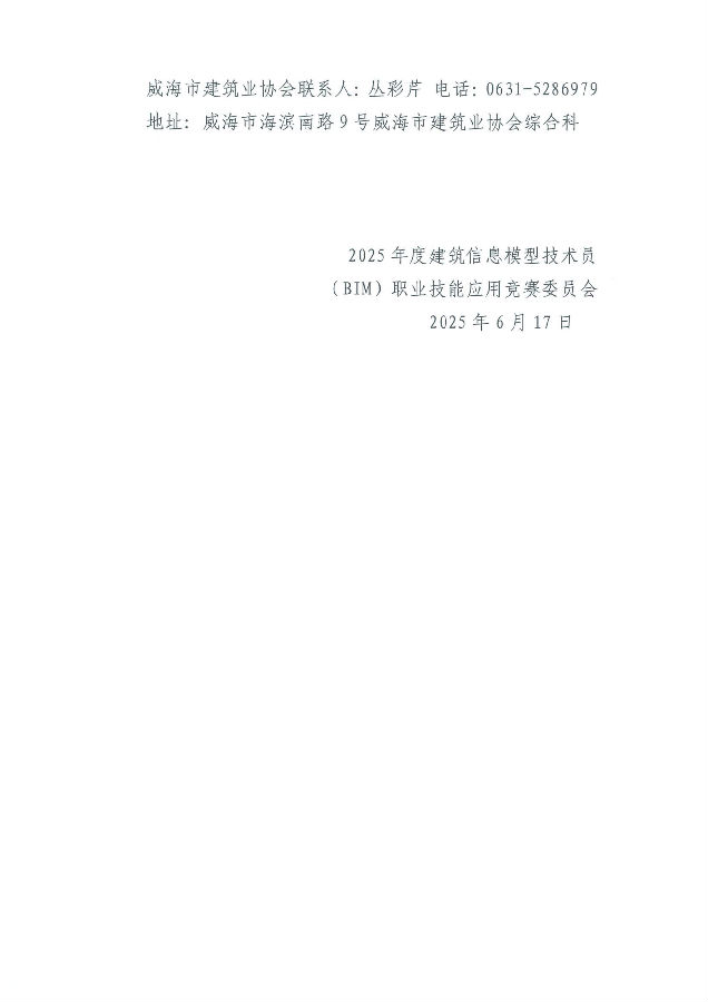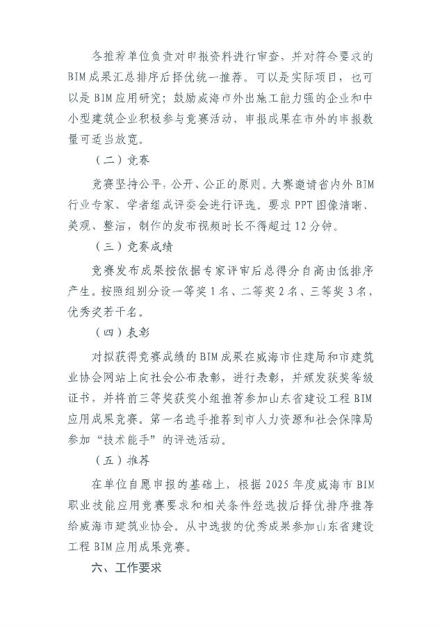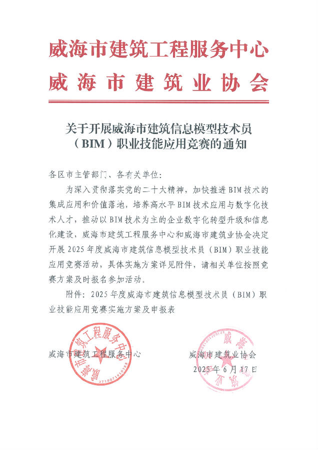 >關(guān)于開展威海市建筑信息模型技術(shù)員(BIM)職業(yè)技能應(yīng)用競賽的通知