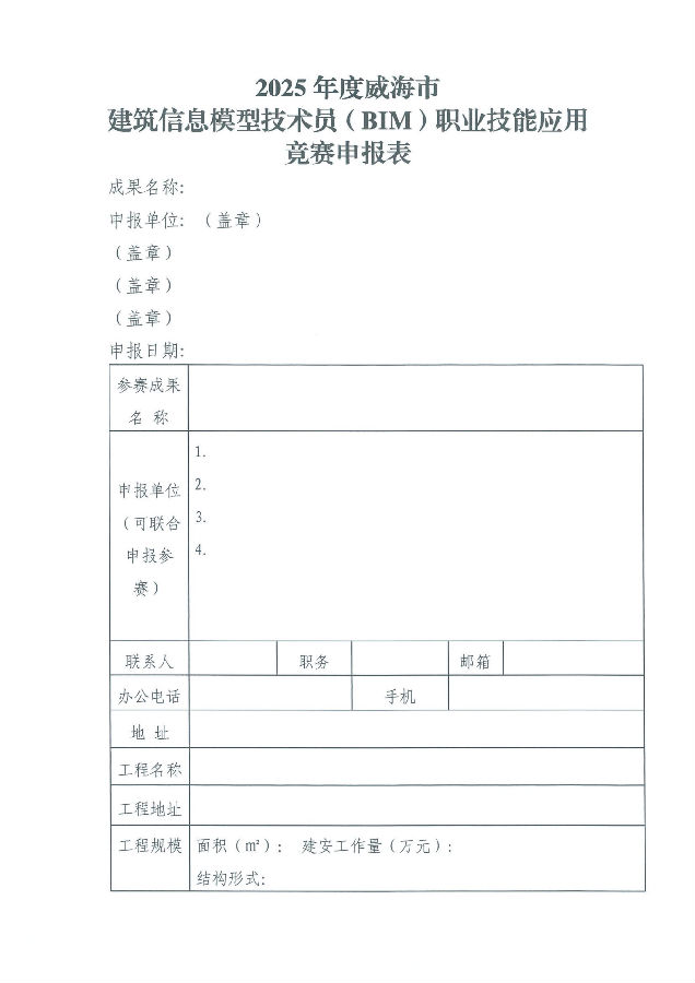 2025年度威海市建筑信息模型技術(shù)員(BIM)職業(yè)技能應(yīng)用競賽申報表.docx