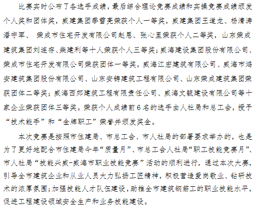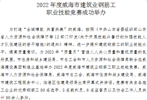 >2022年度威海市建筑業(yè)鋼筋工職業(yè)技能競賽成功舉辦