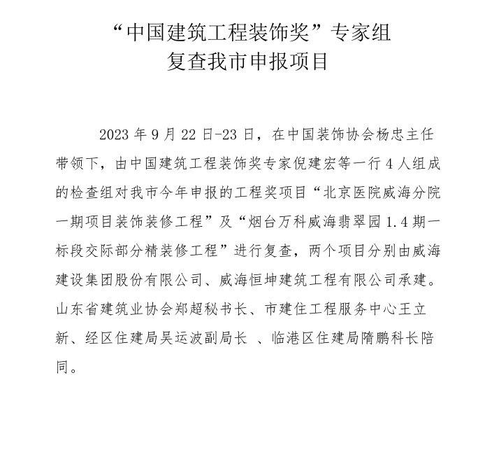 >“中國(guó)建筑工程裝飾獎(jiǎng)”專家組 復(fù)查我市申報(bào)項(xiàng)目