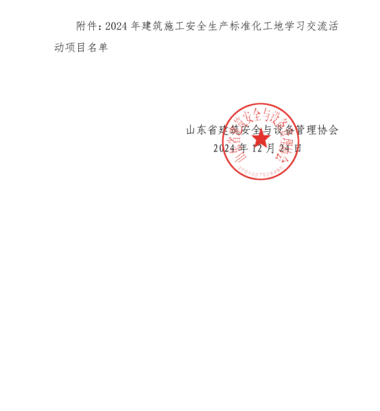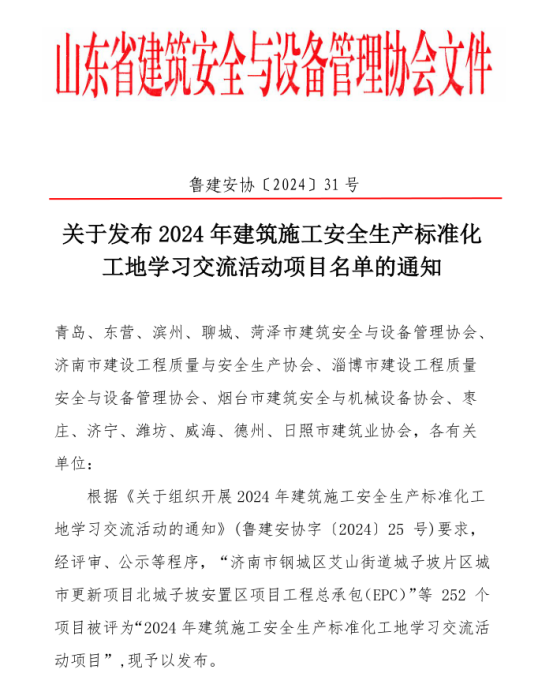 近日,山東省建筑安全與設(shè)備管理協(xié)會下發(fā)《關(guān)于發(fā)布2024年建筑施工安全生產(chǎn)標(biāo)準(zhǔn)化工地學(xué)習(xí)交流活動項(xiàng)目名單的通知》,威海市共有9個項(xiàng)目入選。